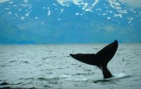 日本の北東 シベリアとアラスカの間にアリューシャン列島があります。 その地域は嵐が吹きすさび、人間があまり近寄れない場所です。 そこに200~300頭のザトウクジラが集まります。迫力満点です。 メキシコ湾近くで生まれたザトウクジラが,冷たい海域まで北上するのは